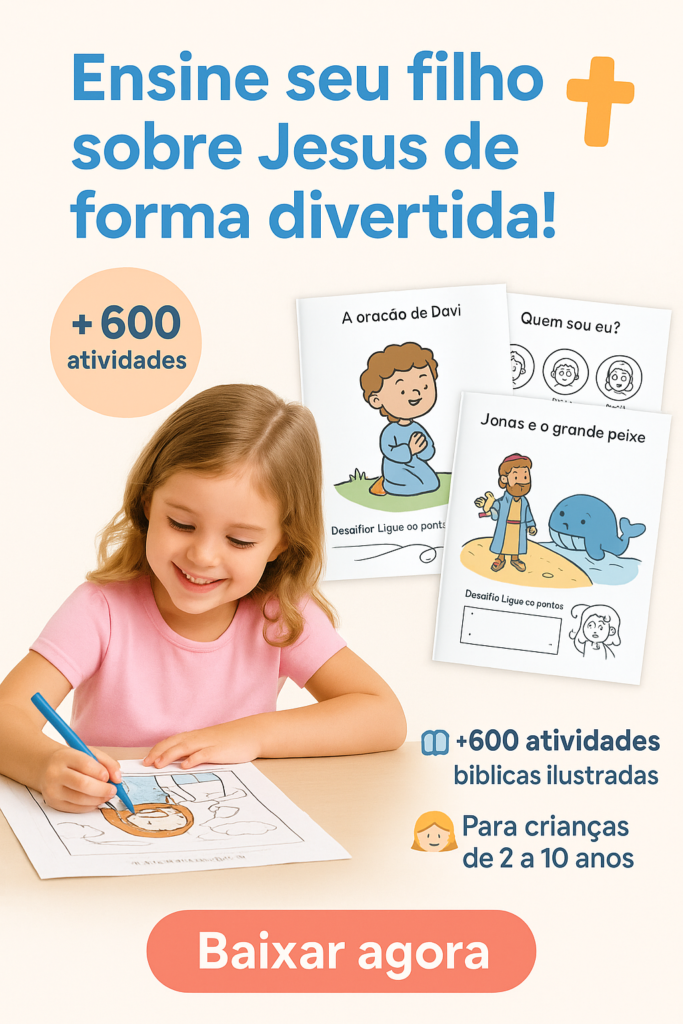 Tenha acesso ao KIT de Atividades Bíblicas que já ajudou milhares de pais e educadores no Brasil! COMECE A FAZER A DIFERENÇA NA VIDA DAS CRIANÇAS!